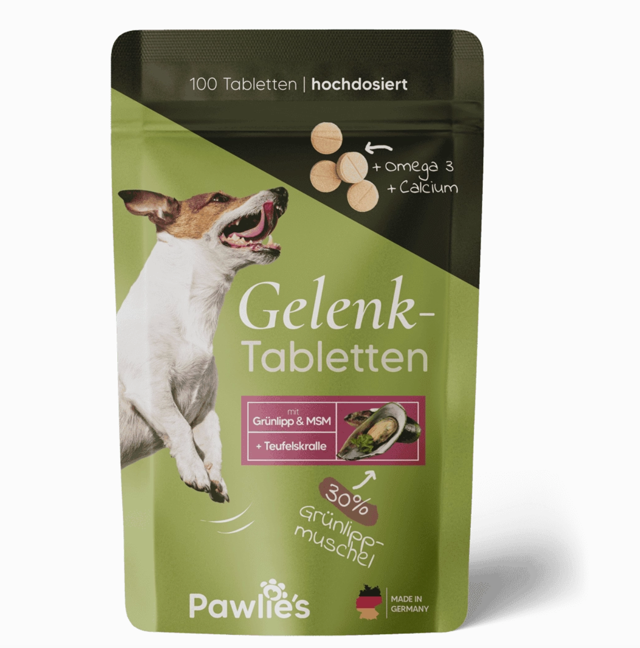 With the joint tablets for dogs with green-lipped mussels, MSM and glucosamine from Pawlie’s, you provide your four-legged friend with the most important nutrients for the joint apparatus. The economical fish-flavored tablets offer an optimal combination of minerals and vitamin C, vitamin B6 and omega 3. The natural dietary supplement for dogs specifically protects your four-legged friend’s joints and has an anti-inflammatory effect at the same time. The high-quality ingredients are rich in valuable omega-3, calcium, vitamin C and vitamin B6.